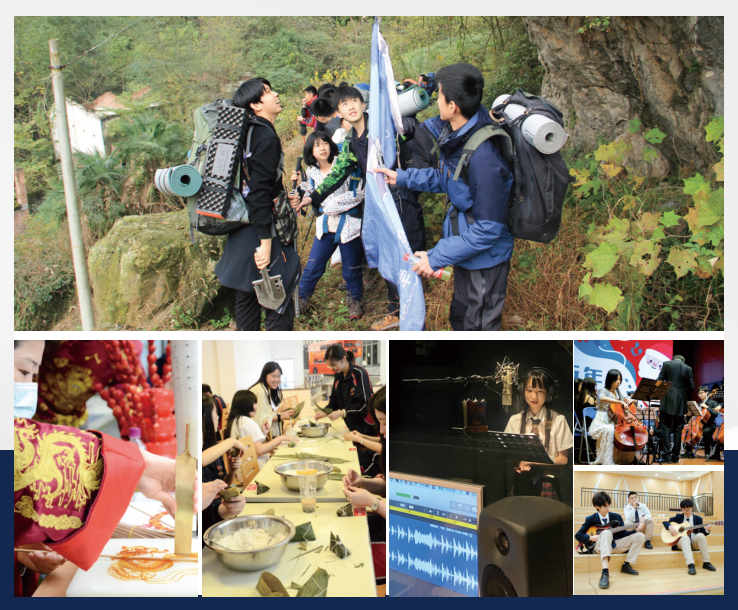 The school manifests the spirit of British high-end education, while immersing the schoolin the holistic educational philosophy of "GlobalPerspectives, Local Roots, Cultural Ambassadors, Future Ccitizes." Having estabished more than 40 extra curicular and weekend coursesaimed at improving students’ skils outside the realm of academics, Examples of EcA courses are as folows: Horse-riding, fashiordesign, wire inlay thangka, human sketching, ukulele, bryophyte research, intangible bamboo weaving, intangible vegetable tiedyeing.Intangible screen-printing, data visualisation research, helicopter model making, entrepreneurship club, microflm club, translating andinterpreting, intelectual puzzles, pencil drawing, magazine editing, student leadership club, basketball club, tae kwon do club, rugby,softball, cricket, football, fitness, table tennis,skiing, ultimate frisbee, Chinese and Western cooking...